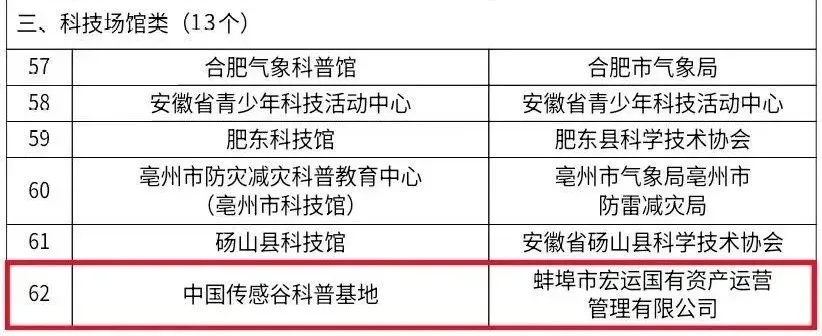 根据安徽省科学技术厅《关于开展2025年安徽省科学技术普及基地认定工作的通知》(皖科改秘〔2025〕77号)文件要求,经有关单位申报、市级推荐、专家评审、实地勘察等程序,蚌埠经开区申报的中国传感谷展厅成功获批成为2025年蚌埠市唯一一家科技场馆类省级科普教育基地。